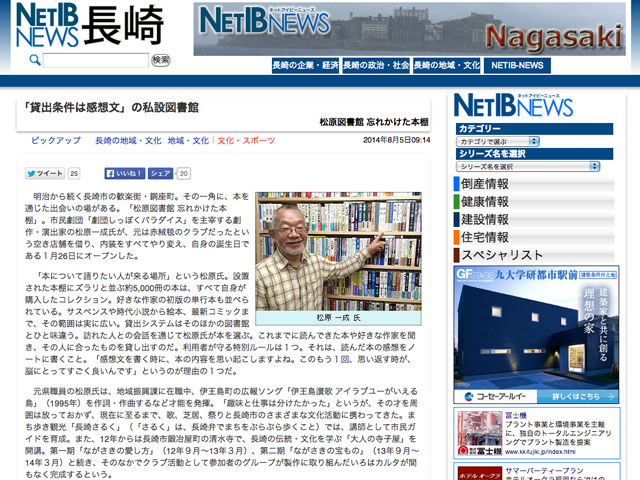NETIB NEWS 長崎さんに、松原図書館を取材していただきました
